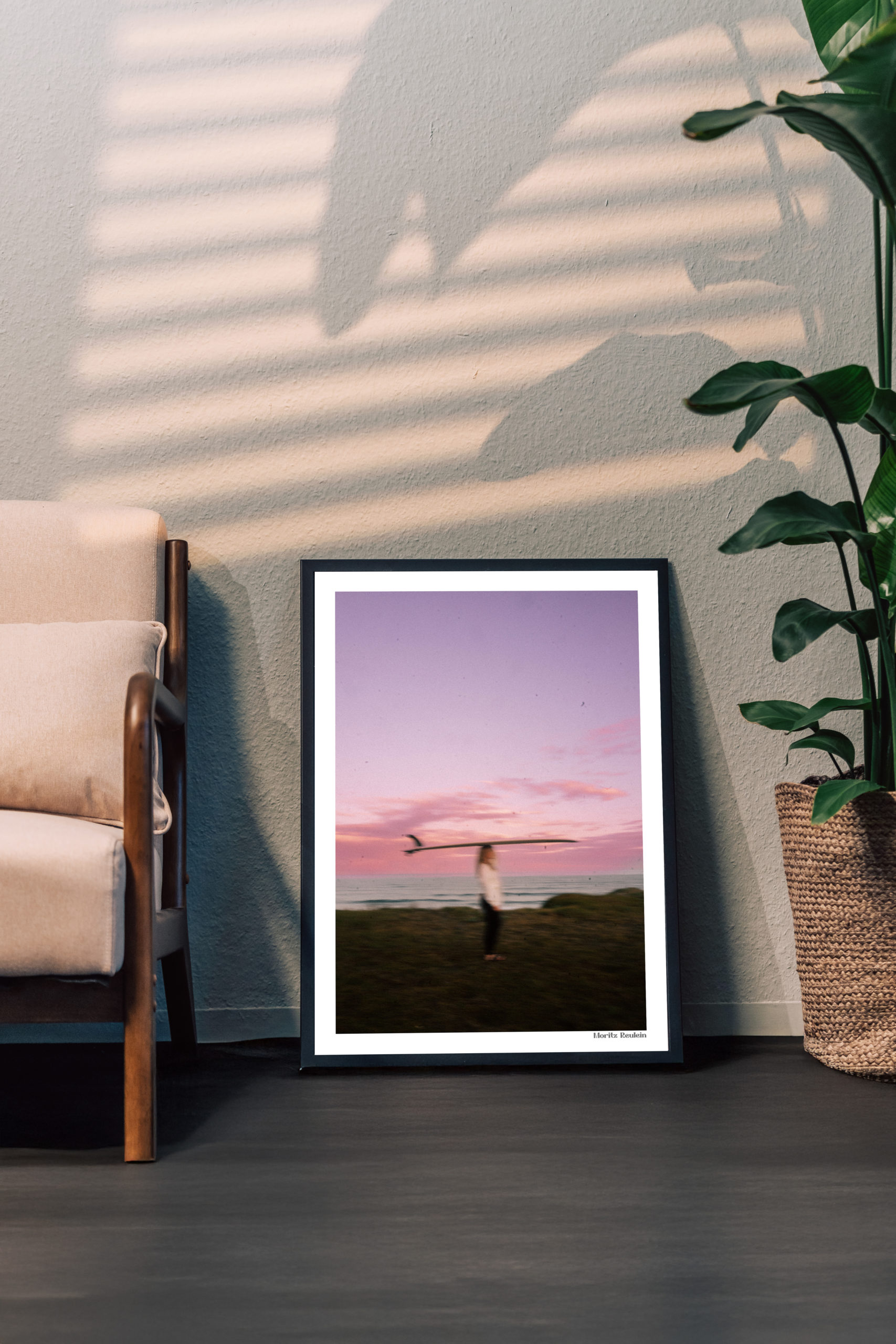 Durch seine reduzierte Bildsprache und die warme Lichtstimmung wirkt das Motiv modern und zeitlos zugleich. Als Fine Art Print bringt es Ruhe, Freiheit und eine subtile Surf-Ästhetik in Wohnräume, Büros oder minimalistische Interieurs.